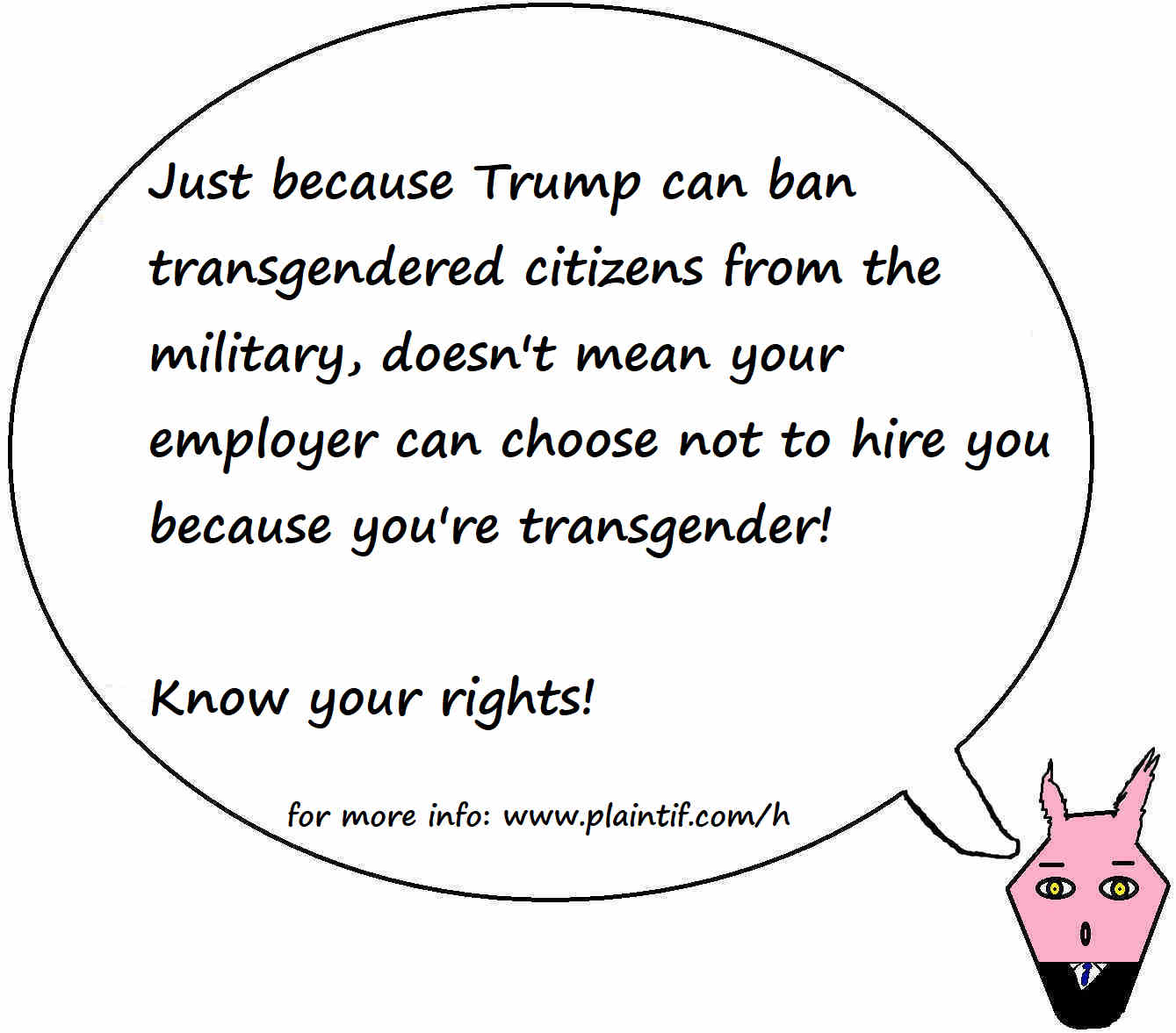 Otherwise, under new rulings last May, the American with Disabilities Act (ADA) now can be interpreted to cover people with gender dysphoria. That means, if you’re transgendered and suffering from gender dysphoria, you may now get all the employment law benefits that the ADA provides.